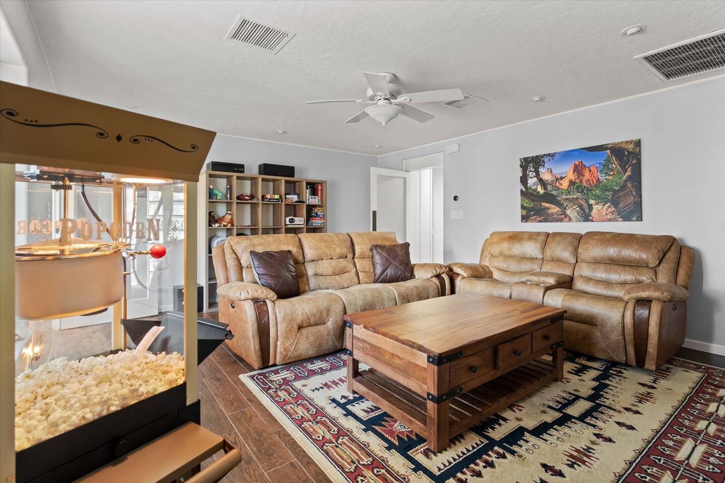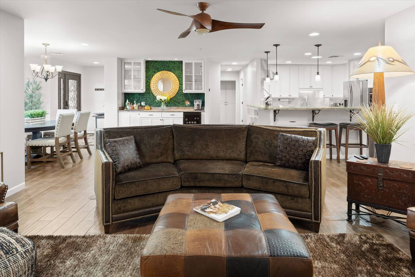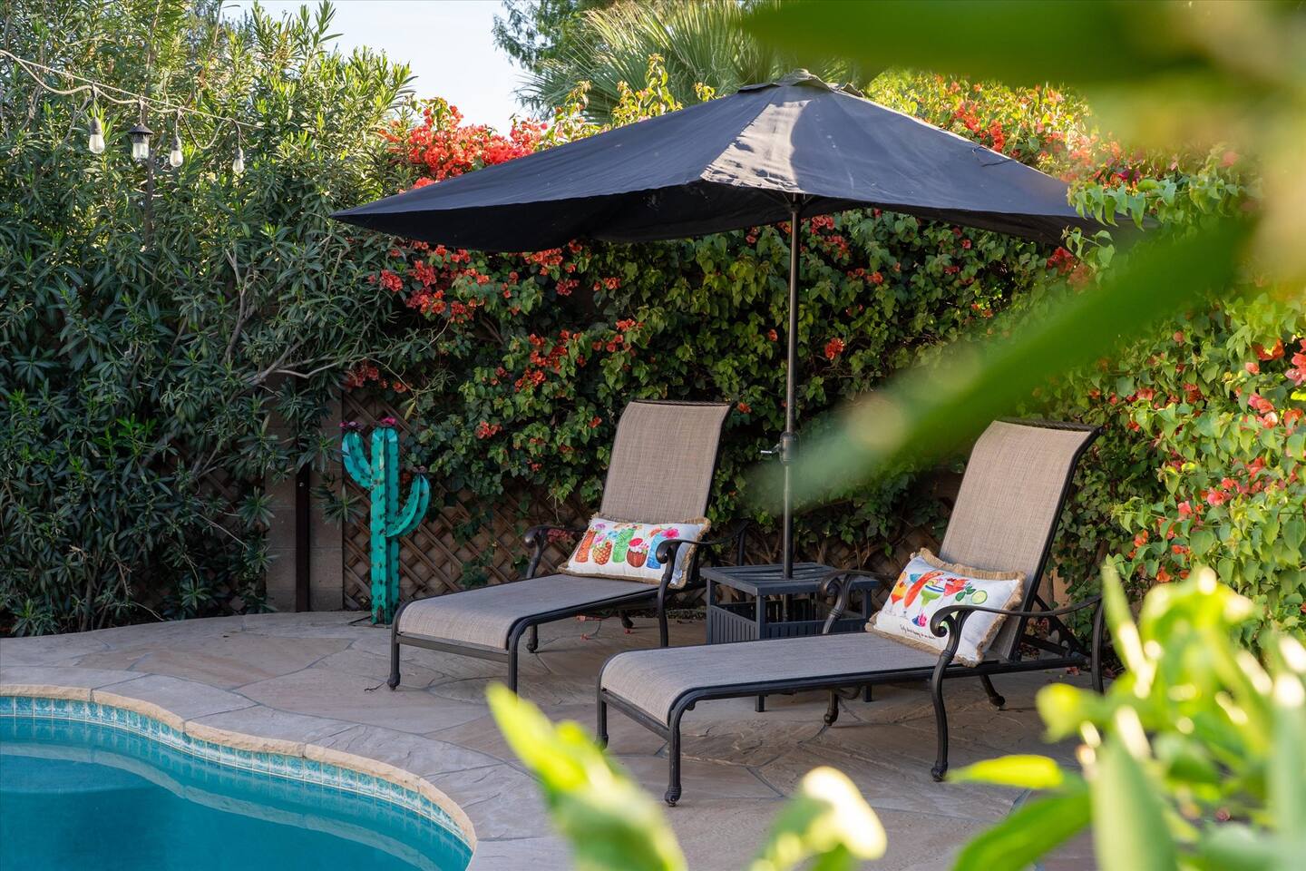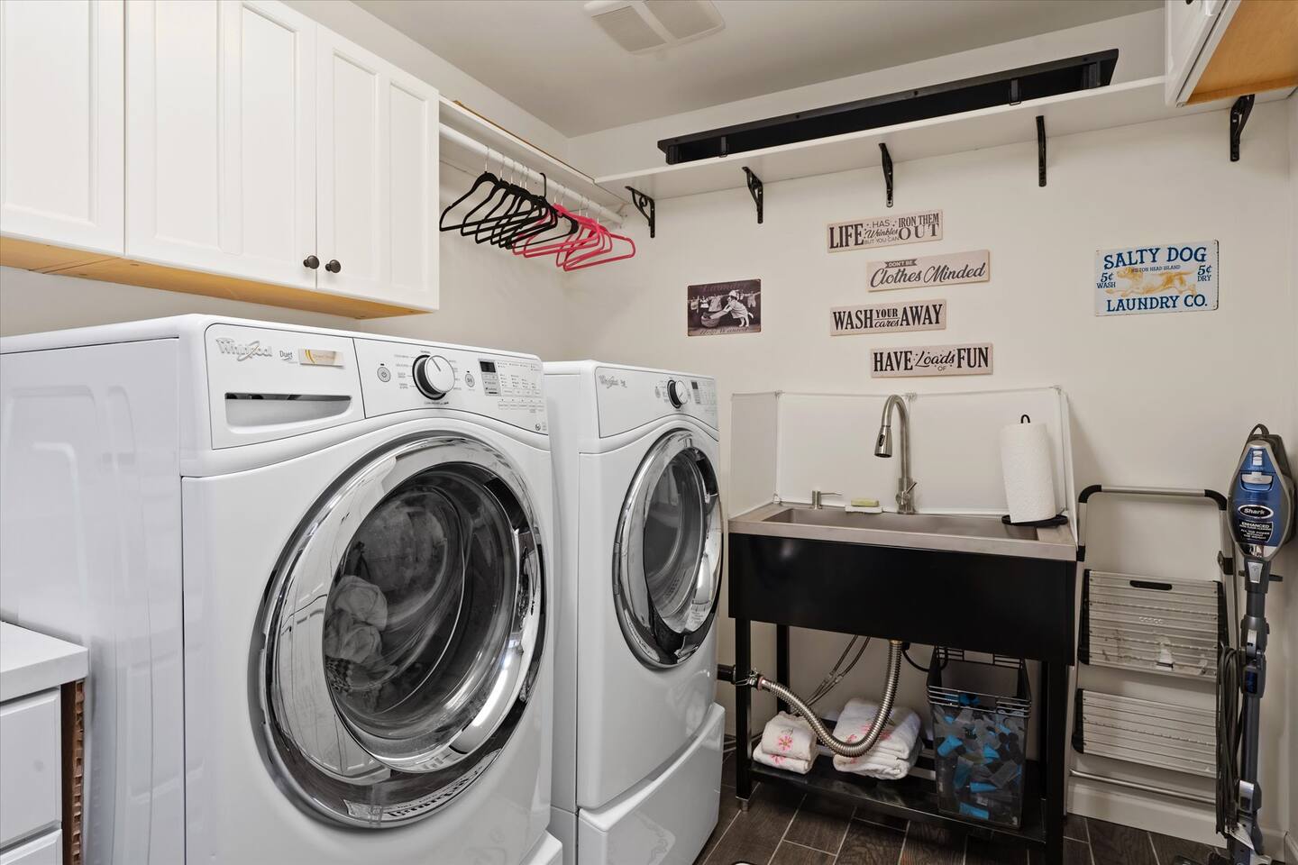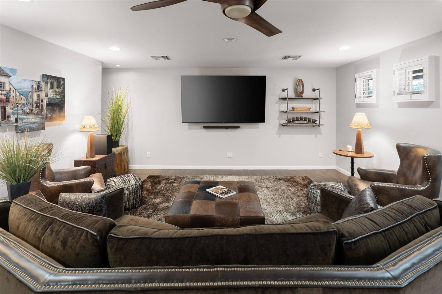 WHAT THIS PLACE OFFERS Bedrooms (4 - 2 King Beds & 2 Queen Beds) Bathrooms (3 Full) Bathtubs (2) Hair dryers & curling irons in each bathroom Cleaning products in each bathroom EcoWell H2O Therapy shampoo & body wash Hand soap in each bathroom & kitchen Navien NPE-240A on-demand hot water system Bath and pool towels Toilet paper, paper towels & Kleenex tissue Closet hangers Bed linens (2 sets per room) Room-darkening shutters and shades Ensuite walk-in closets, closets, nightstands, luggage stands and dressers Baby Pack ’n play/Travel crib Pool safety fence/gate system available HVAC - 2 air conditioning/central heating units Ceiling fans Christmas decorations LIVING ROOM & HOME THEATER Living room 85" Roku HDTV, Samsung Soundbar, designer couch/ottoman with 2 leather chairs 120" ONN Roku TV projector system, Sony surround sound speaker system and 2 leather reclining theater couches Nostalgia old-fashioned popcorn cart with candy dispenser Extra pillows and blankets Books, magazines and reading material Children’s books and toys Board games, trivia games, playing cards and puzzles HOME OFFICE & SUN/WELLNESS ROOM T--Mobile WIFI tower & service Dedicated adjustable height desk workspace with ViewSonic monitor and Logitech keyboard & mouse Private Sunlighten Amplify II 2-person full spectrum infrared sauna with chromotherapy & 2-speaker Bluetooth audio system ONN 44" Roku HDTV Gym Weights (5-20 lbs), Yoga Mats (2) & Resistance Bands Twin sofa sleeper bed for 2 kids and/or 2 extra guests KITCHEN, DRINK BAR & DINING Thermador & Whirlpool kitchen appliances Space where guests can cook their own meals Whirlpool refrigerator/freezer Whirlpool microwave/oven combo Frigidaire beverage refrigerator & Kismile icemaker Thermador natural gas cooktop/oven Thermador dishwasher Garbage disposal Dining table (6-person) Bar stool dining (2-person) COOKING BASICS Pots and pans Dishes, silverware and glassware (plastic sets for pool area) Bowls, chopsticks, plates, cups, etc. Keurig 2.0 coffee machine Haden hot water kettle Chefman coffee maker Wine and drink glassware (plastic sets for pool area) Toaster Baking sheet, tin, glassware and cooling racks Pizza sheet Breville blender BACKYARD OASIS Private outdoor lighted saltwater pool (not heated) - available all year, open specific hours, pool toys, child safe fencing system available to put in by guests, as needed, open from 7:00 AM to 9:00 PM Private Aquavoss hot/cold tub - available all year, open specific hours with outdoor entertainment systems (TV + soundbar) and Fosi Audio BT20A Bluetooth sound system, open from 7:00 AM to 9:00 PM Outdoor furniture Sun loungers (2) with umbrella Mini golf 4-hole putting green and turf outdoor games recreation area Outdoor dining areas (1 backyard high table with 4 chairs and built-in flame adjustable propane fire pit, 1 backyard low table with 2 couches for seating 5 and 1 front patio table with 4 chairs and umbrella) Private outdoor kitchen with BBQ grill (natural gas) BBQ tools, silpat cooking mat and cleaning products LAUNDRY ROOM Whirlpool Duet washer & dryer Utility sink Laundry essentials Laundry basket Drying rack with hangers for clothing Shark Rocket Deluxe Pro vacuum cleaner Libman floor sweeper Cosco stepstool Broom & dustpan HOME SECURITY SYSTEMS 4 monitored Ring exterior security cameras (carport, inside garage, the front door bell, and the backyard) All windows are monitored Front door Yale monitored keyless entry lock along with the 2 Nest thermostats Rear door Defiant monitored keyless entry lock Smoke alarms Carbon monoxide alarm (back bedroom for Navien NPE-240A on-demand hot water system) Fire extinguisher (laundry room) First aid kit (laundry room) Outlet covers (laundry room) PARKING Free carport on premises – 2 spaces