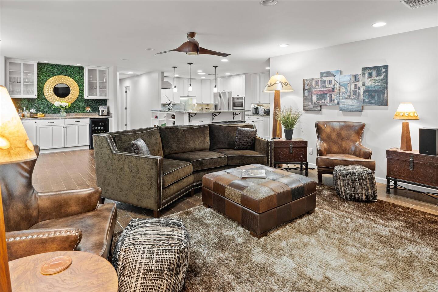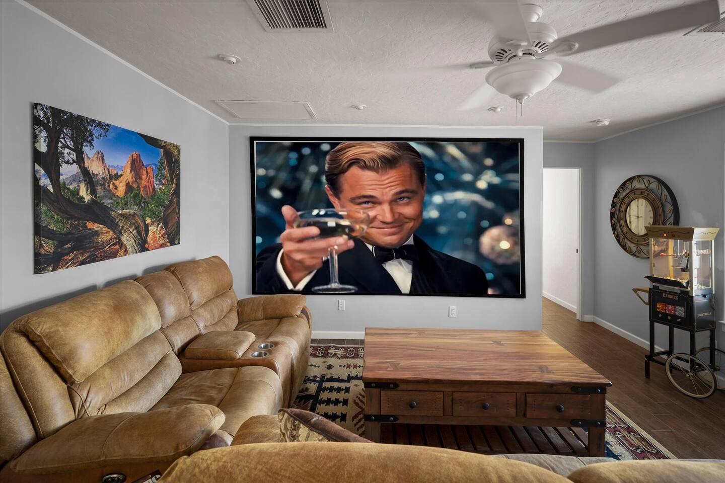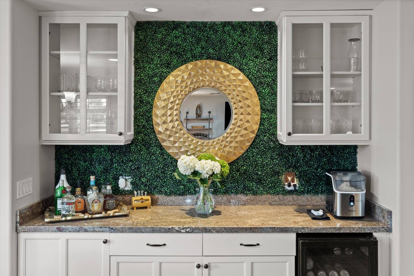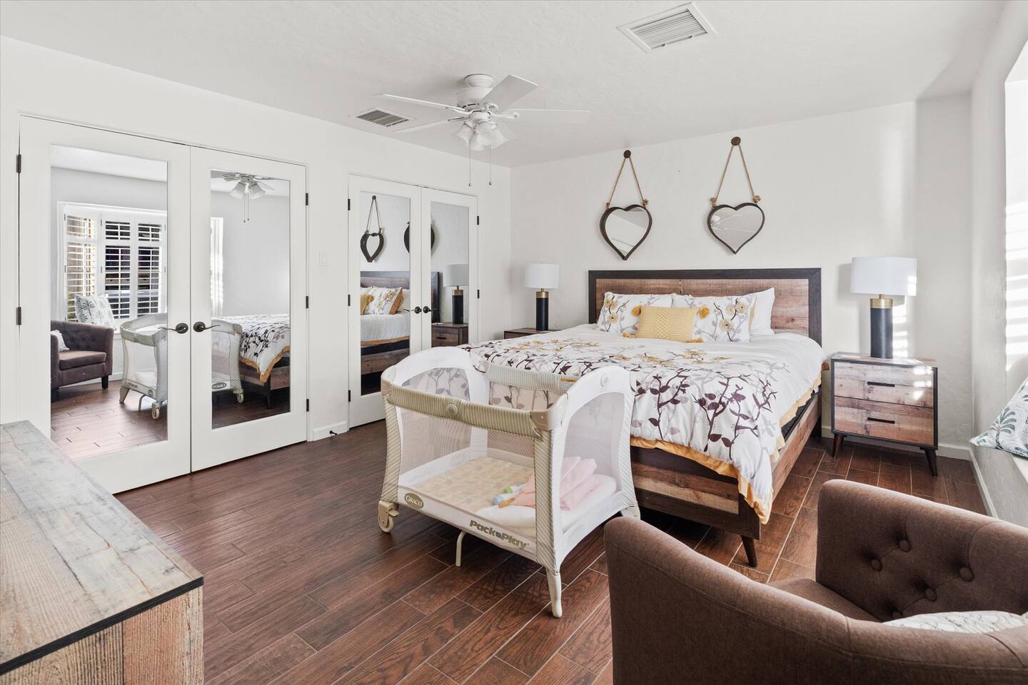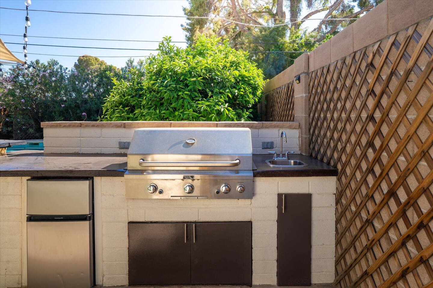 WHAT THIS PLACE OFFERS Bedrooms (4 - 2 King Beds & 2 Queen Beds) Bathrooms (3 Full) Bathtubs (2) Hair dryers & curling irons in each bathroom Cleaning products in each bathroom EcoWell H2O Therapy shampoo & body wash Hand soap in each bathroom & kitchen Navien NPE-240A on-demand hot water system Bath and pool towels Toilet paper, paper towels & Kleenex tissue Closet hangers Bed linens (2 sets per room) Room-darkening shutters and shades Ensuite walk-in closets, closets, nightstands, luggage stands and dressers Baby Pack ’n play/Travel crib Pool safety fence/gate system available HVAC - 2 air conditioning/central heating units Ceiling fans Christmas decorations LIVING ROOM & HOME THEATER Living room 85" Roku HDTV, Samsung Soundbar, designer couch/ottoman with 2 leather chairs 120" ONN Roku TV projector system, Sony surround sound speaker system and 2 leather reclining theater couches Nostalgia old-fashioned popcorn cart with candy dispenser Extra pillows and blankets Books, magazines and reading material Children’s books and toys Board games, trivia games, playing cards and puzzles HOME OFFICE & SUN/WELLNESS ROOM T--Mobile WIFI tower & service Dedicated adjustable height desk workspace with ViewSonic monitor and Logitech keyboard & mouse Private Sunlighten Amplify II 2-person full spectrum infrared sauna with chromotherapy & 2-speaker Bluetooth audio system ONN 44" Roku HDTV Gym Weights (5-20 lbs), Yoga Mats (2) & Resistance Bands Twin sofa sleeper bed for 2 kids and/or 2 extra guests KITCHEN, DRINK BAR & DINING Thermador & Whirlpool kitchen appliances Space where guests can cook their own meals Whirlpool refrigerator/freezer Whirlpool microwave/oven combo Frigidaire beverage refrigerator & Kismile icemaker Thermador natural gas cooktop/oven Thermador dishwasher Garbage disposal Dining table (6-person) Bar stool dining (2-person) COOKING BASICS Pots and pans Dishes, silverware and glassware (plastic sets for pool area) Bowls, chopsticks, plates, cups, etc. Keurig 2.0 coffee machine Haden hot water kettle Chefman coffee maker Wine and drink glassware (plastic sets for pool area) Toaster Baking sheet, tin, glassware and cooling racks Pizza sheet Breville blender BACKYARD OASIS Private outdoor lighted saltwater pool (not heated) - available all year, open specific hours, pool toys, child safe fencing system available to put in by guests, as needed, open from 7:00 AM to 9:00 PM Private Aquavoss hot/cold tub - available all year, open specific hours with outdoor entertainment systems (TV + soundbar) and Fosi Audio BT20A Bluetooth sound system, open from 7:00 AM to 9:00 PM Outdoor furniture Sun loungers (2) with umbrella Mini golf 4-hole putting green and turf outdoor games recreation area Outdoor dining areas (1 backyard high table with 4 chairs and built-in flame adjustable propane fire pit, 1 backyard low table with 2 couches for seating 5 and 1 front patio table with 4 chairs and umbrella) Private outdoor kitchen with BBQ grill (natural gas) BBQ tools, silpat cooking mat and cleaning products LAUNDRY ROOM Whirlpool Duet washer & dryer Utility sink Laundry essentials Laundry basket Drying rack with hangers for clothing Shark Rocket Deluxe Pro vacuum cleaner Libman floor sweeper Cosco stepstool Broom & dustpan HOME SECURITY SYSTEMS 4 monitored Ring exterior security cameras (carport, inside garage, the front door bell, and the backyard) All windows are monitored Front door Yale monitored keyless entry lock along with the 2 Nest thermostats Rear door Defiant monitored keyless entry lock Smoke alarms Carbon monoxide alarm (back bedroom for Navien NPE-240A on-demand hot water system) Fire extinguisher (laundry room) First aid kit (laundry room) Outlet covers (laundry room) PARKING Free carport on premises – 2 spaces
