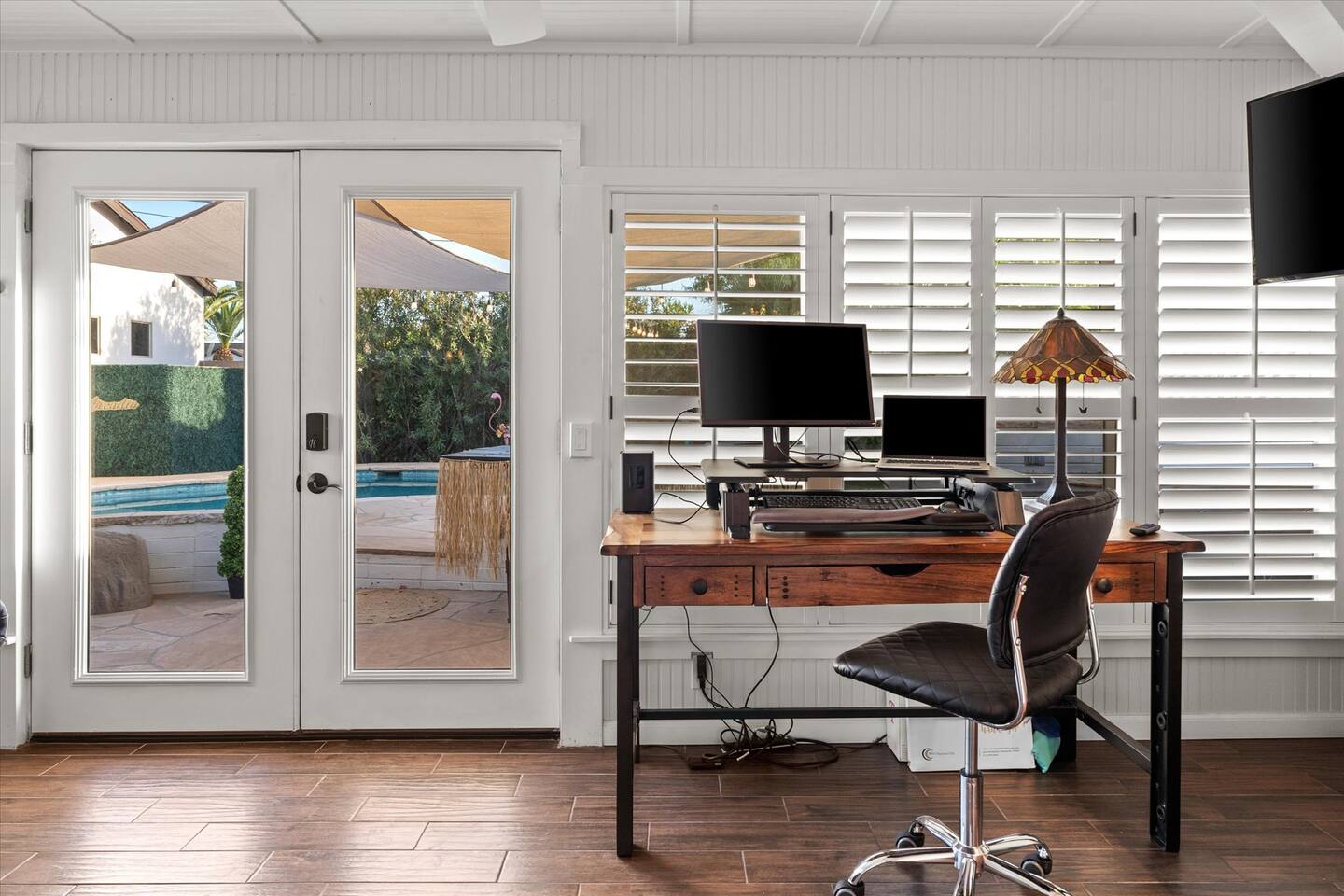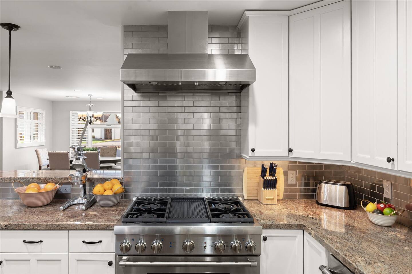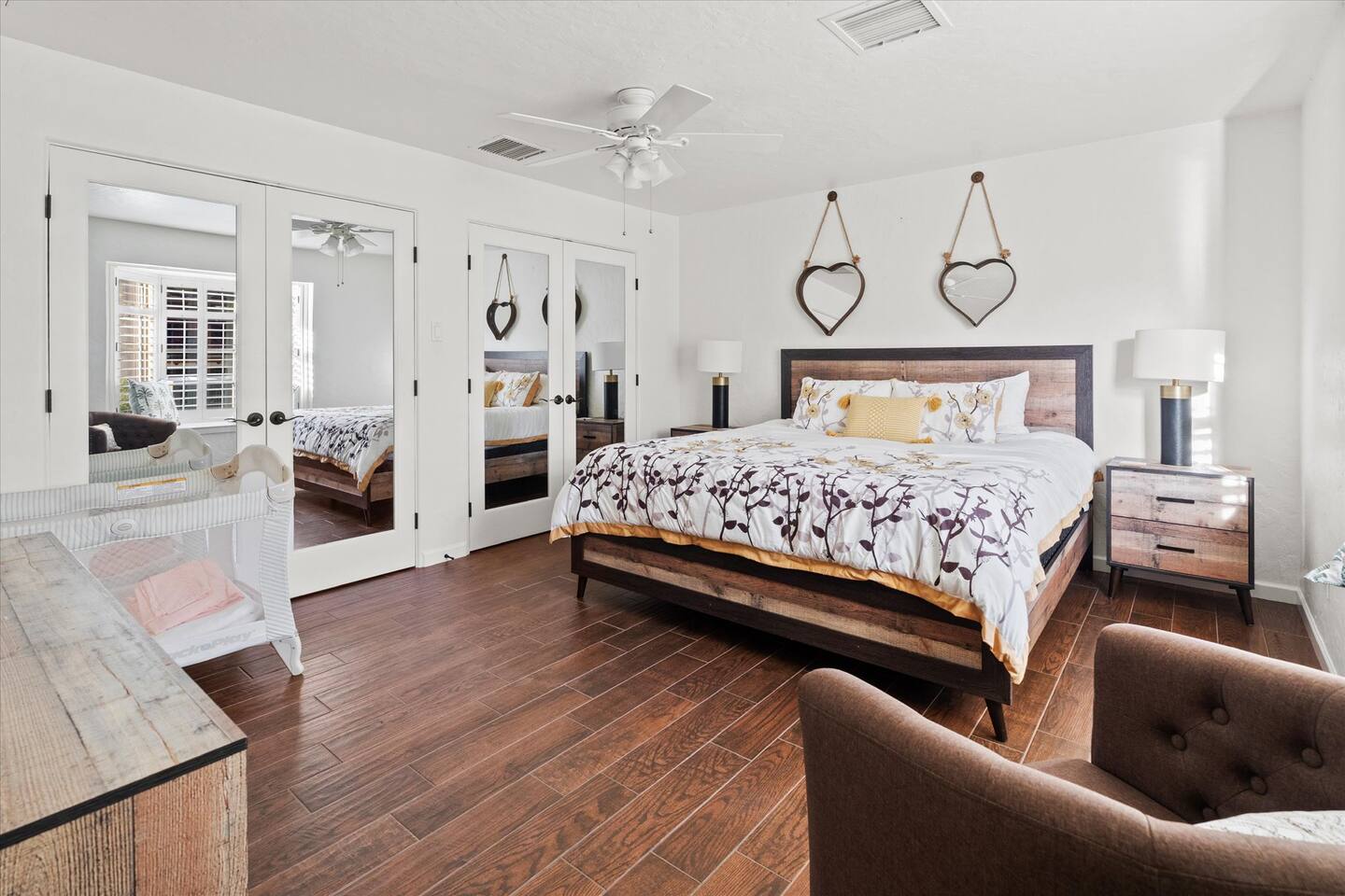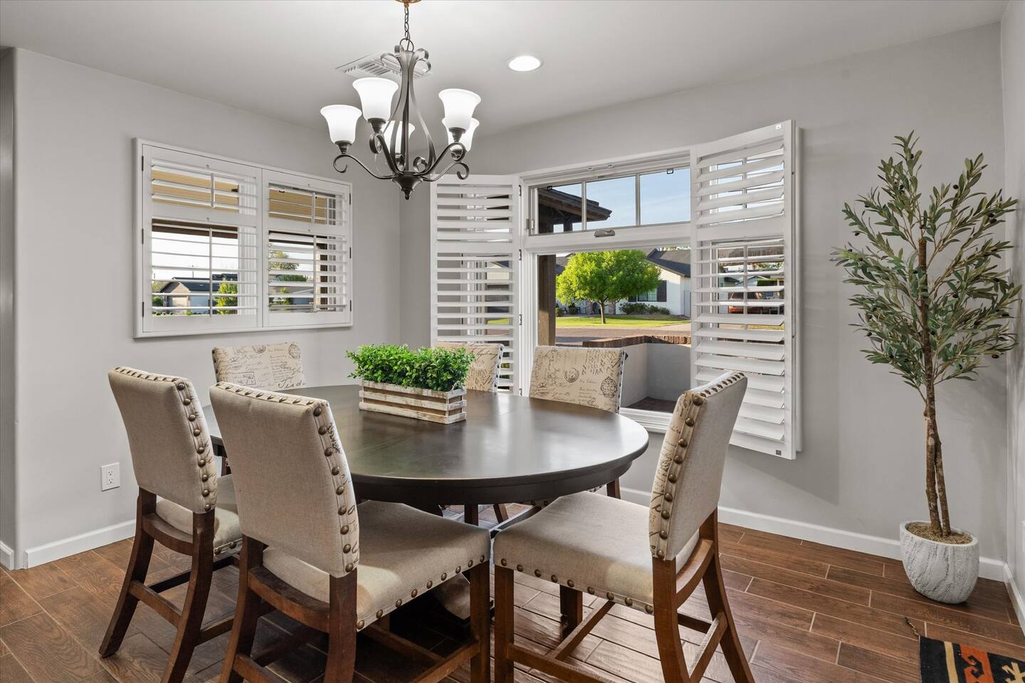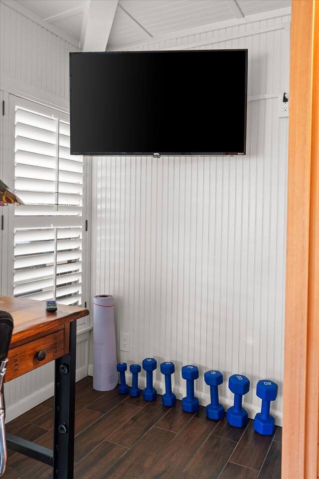 WHAT THIS PLACE OFFERS Bedrooms (4 - 2 King Beds & 2 Queen Beds) Bathrooms (3 Full) Bathtubs (2) Hair dryers & curling irons in each bathroom Cleaning products in each bathroom EcoWell H2O Therapy shampoo & body wash Hand soap in each bathroom & kitchen Navien NPE-240A on-demand hot water system Bath and pool towels Toilet paper, paper towels & Kleenex tissue Closet hangers Bed linens (2 sets per room) Room-darkening shutters and shades Ensuite walk-in closets, closets, nightstands, luggage stands and dressers Baby Pack ’n play/Travel crib Pool safety fence/gate system available HVAC - 2 air conditioning/central heating units Ceiling fans Christmas decorations LIVING ROOM & HOME THEATER Living room 85" Roku HDTV, Samsung Soundbar, designer couch/ottoman with 2 leather chairs 120" ONN Roku TV projector system, Sony surround sound speaker system and 2 leather reclining theater couches Nostalgia old-fashioned popcorn cart with candy dispenser Extra pillows and blankets Books, magazines and reading material Children’s books and toys Board games, trivia games, playing cards and puzzles HOME OFFICE & SUN/WELLNESS ROOM T--Mobile WIFI tower & service Dedicated adjustable height desk workspace with ViewSonic monitor and Logitech keyboard & mouse Private Sunlighten Amplify II 2-person full spectrum infrared sauna with chromotherapy & 2-speaker Bluetooth audio system ONN 44" Roku HDTV Gym Weights (5-20 lbs), Yoga Mats (2) & Resistance Bands Twin sofa sleeper bed for 2 kids and/or 2 extra guests KITCHEN, DRINK BAR & DINING Thermador & Whirlpool kitchen appliances Space where guests can cook their own meals Whirlpool refrigerator/freezer Whirlpool microwave/oven combo Frigidaire beverage refrigerator & Kismile icemaker Thermador natural gas cooktop/oven Thermador dishwasher Garbage disposal Dining table (6-person) Bar stool dining (2-person) COOKING BASICS Pots and pans Dishes, silverware and glassware (plastic sets for pool area) Bowls, chopsticks, plates, cups, etc. Keurig 2.0 coffee machine Haden hot water kettle Chefman coffee maker Wine and drink glassware (plastic sets for pool area) Toaster Baking sheet, tin, glassware and cooling racks Pizza sheet Breville blender BACKYARD OASIS Private outdoor lighted saltwater pool (not heated) - available all year, open specific hours, pool toys, child safe fencing system available to put in by guests, as needed, open from 7:00 AM to 9:00 PM Private Aquavoss hot/cold tub - available all year, open specific hours with outdoor entertainment systems (TV + soundbar) and Fosi Audio BT20A Bluetooth sound system, open from 7:00 AM to 9:00 PM Outdoor furniture Sun loungers (2) with umbrella Mini golf 4-hole putting green and turf outdoor games recreation area Outdoor dining areas (1 backyard high table with 4 chairs and built-in flame adjustable propane fire pit, 1 backyard low table with 2 couches for seating 5 and 1 front patio table with 4 chairs and umbrella) Private outdoor kitchen with BBQ grill (natural gas) BBQ tools, silpat cooking mat and cleaning products LAUNDRY ROOM Whirlpool Duet washer & dryer Utility sink Laundry essentials Laundry basket Drying rack with hangers for clothing Shark Rocket Deluxe Pro vacuum cleaner Libman floor sweeper Cosco stepstool Broom & dustpan HOME SECURITY SYSTEMS 4 monitored Ring exterior security cameras (carport, inside garage, the front door bell, and the backyard) All windows are monitored Front door Yale monitored keyless entry lock along with the 2 Nest thermostats Rear door Defiant monitored keyless entry lock Smoke alarms Carbon monoxide alarm (back bedroom for Navien NPE-240A on-demand hot water system) Fire extinguisher (laundry room) First aid kit (laundry room) Outlet covers (laundry room) PARKING Free carport on premises – 2 spaces