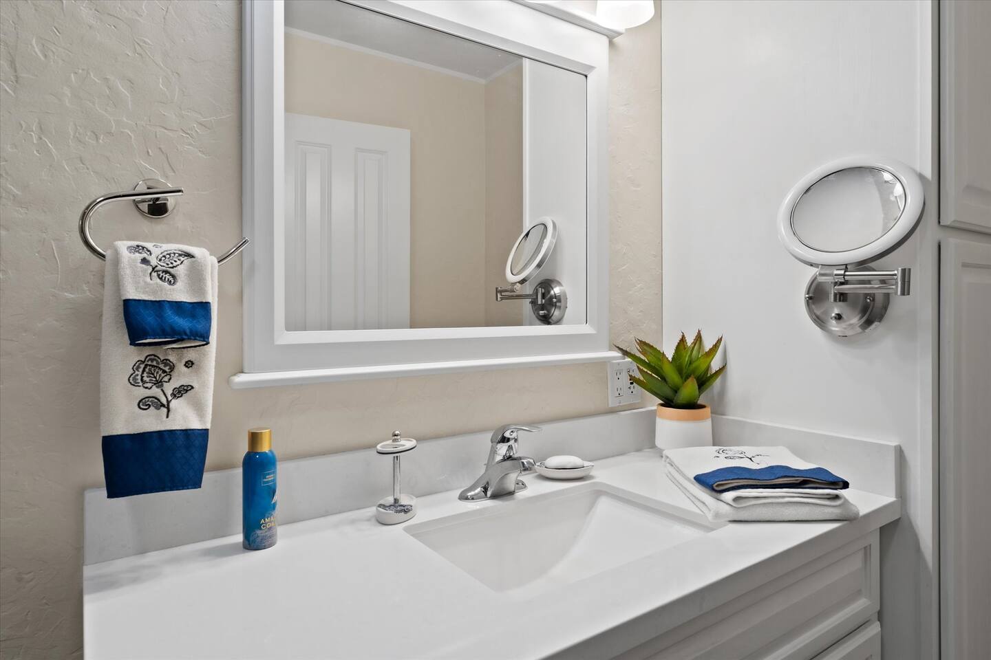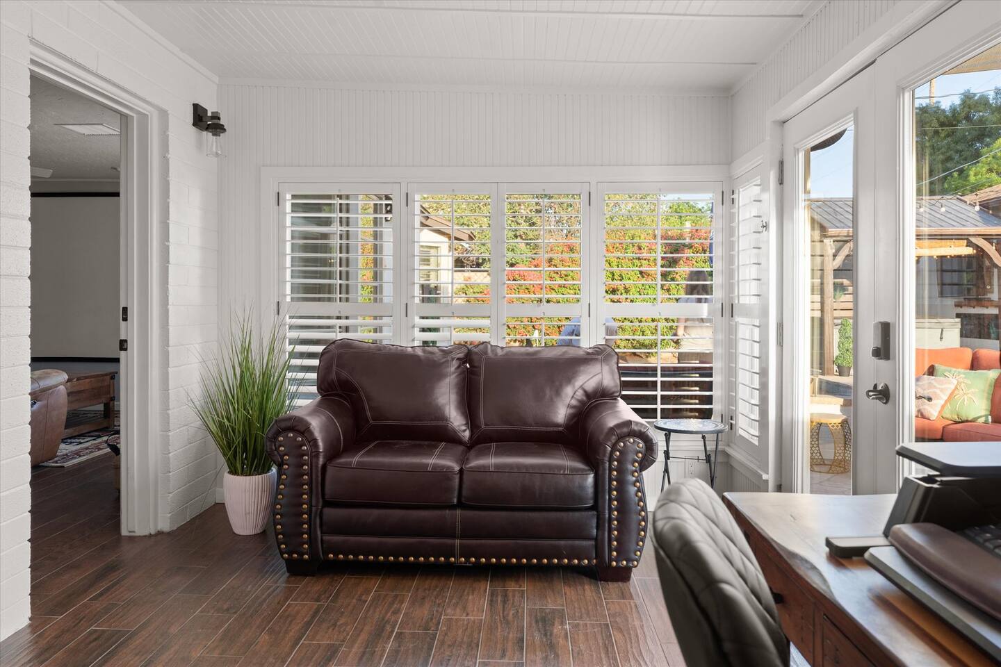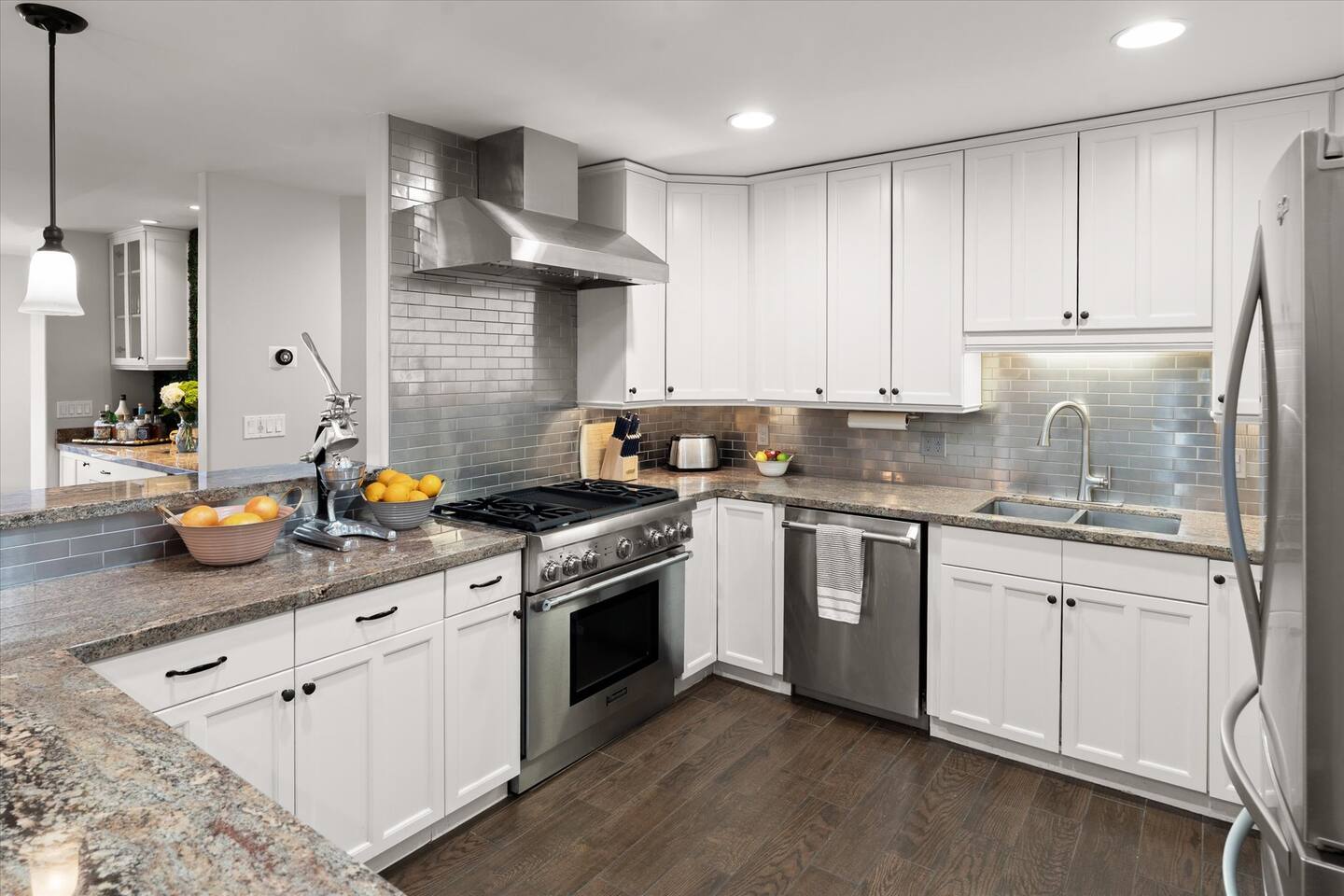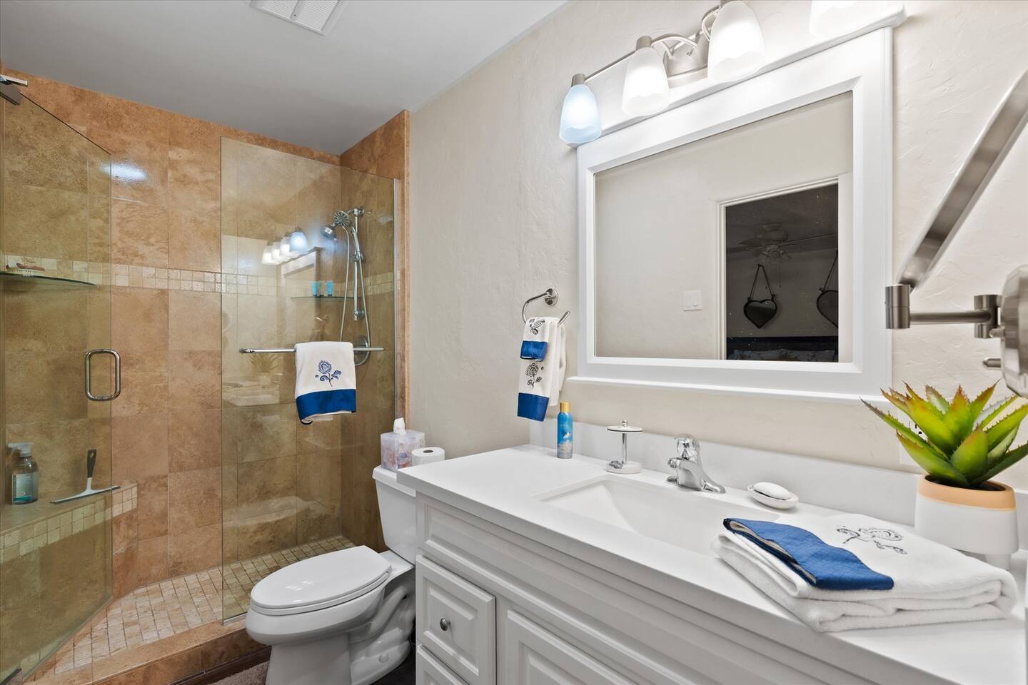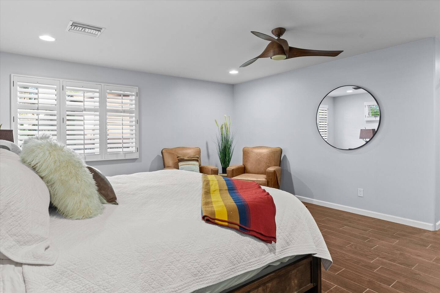 WHAT THIS PLACE OFFERS Bedrooms (4 - 2 King Beds & 2 Queen Beds) Bathrooms (3 Full) Bathtubs (2) Hair dryers & curling irons in each bathroom Cleaning products in each bathroom EcoWell H2O Therapy shampoo & body wash Hand soap in each bathroom & kitchen Navien NPE-240A on-demand hot water system Bath and pool towels Toilet paper, paper towels & Kleenex tissue Closet hangers Bed linens (2 sets per room) Room-darkening shutters and shades Ensuite walk-in closets, closets, nightstands, luggage stands and dressers Baby Pack ’n play/Travel crib Pool safety fence/gate system available HVAC - 2 air conditioning/central heating units Ceiling fans Christmas decorations LIVING ROOM & HOME THEATER Living room 85" Roku HDTV, Samsung Soundbar, designer couch/ottoman with 2 leather chairs 120" ONN Roku TV projector system, Sony surround sound speaker system and 2 leather reclining theater couches Nostalgia old-fashioned popcorn cart with candy dispenser Extra pillows and blankets Books, magazines and reading material Children’s books and toys Board games, trivia games, playing cards and puzzles HOME OFFICE & SUN/WELLNESS ROOM T--Mobile WIFI tower & service Dedicated adjustable height desk workspace with ViewSonic monitor and Logitech keyboard & mouse Private Sunlighten Amplify II 2-person full spectrum infrared sauna with chromotherapy & 2-speaker Bluetooth audio system ONN 44" Roku HDTV Gym Weights (5-20 lbs), Yoga Mats (2) & Resistance Bands Twin sofa sleeper bed for 2 kids and/or 2 extra guests KITCHEN, DRINK BAR & DINING Thermador & Whirlpool kitchen appliances Space where guests can cook their own meals Whirlpool refrigerator/freezer Whirlpool microwave/oven combo Frigidaire beverage refrigerator & Kismile icemaker Thermador natural gas cooktop/oven Thermador dishwasher Garbage disposal Dining table (6-person) Bar stool dining (2-person) COOKING BASICS Pots and pans Dishes, silverware and glassware (plastic sets for pool area) Bowls, chopsticks, plates, cups, etc. Keurig 2.0 coffee machine Haden hot water kettle Chefman coffee maker Wine and drink glassware (plastic sets for pool area) Toaster Baking sheet, tin, glassware and cooling racks Pizza sheet Breville blender BACKYARD OASIS Private outdoor lighted saltwater pool (not heated) - available all year, open specific hours, pool toys, child safe fencing system available to put in by guests, as needed, open from 7:00 AM to 9:00 PM Private Aquavoss hot/cold tub - available all year, open specific hours with outdoor entertainment systems (TV + soundbar) and Fosi Audio BT20A Bluetooth sound system, open from 7:00 AM to 9:00 PM Outdoor furniture Sun loungers (2) with umbrella Mini golf 4-hole putting green and turf outdoor games recreation area Outdoor dining areas (1 backyard high table with 4 chairs and built-in flame adjustable propane fire pit, 1 backyard low table with 2 couches for seating 5 and 1 front patio table with 4 chairs and umbrella) Private outdoor kitchen with BBQ grill (natural gas) BBQ tools, silpat cooking mat and cleaning products LAUNDRY ROOM Whirlpool Duet washer & dryer Utility sink Laundry essentials Laundry basket Drying rack with hangers for clothing Shark Rocket Deluxe Pro vacuum cleaner Libman floor sweeper Cosco stepstool Broom & dustpan HOME SECURITY SYSTEMS 4 monitored Ring exterior security cameras (carport, inside garage, the front door bell, and the backyard) All windows are monitored Front door Yale monitored keyless entry lock along with the 2 Nest thermostats Rear door Defiant monitored keyless entry lock Smoke alarms Carbon monoxide alarm (back bedroom for Navien NPE-240A on-demand hot water system) Fire extinguisher (laundry room) First aid kit (laundry room) Outlet covers (laundry room) PARKING Free carport on premises – 2 spaces