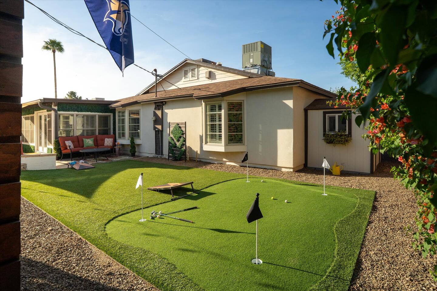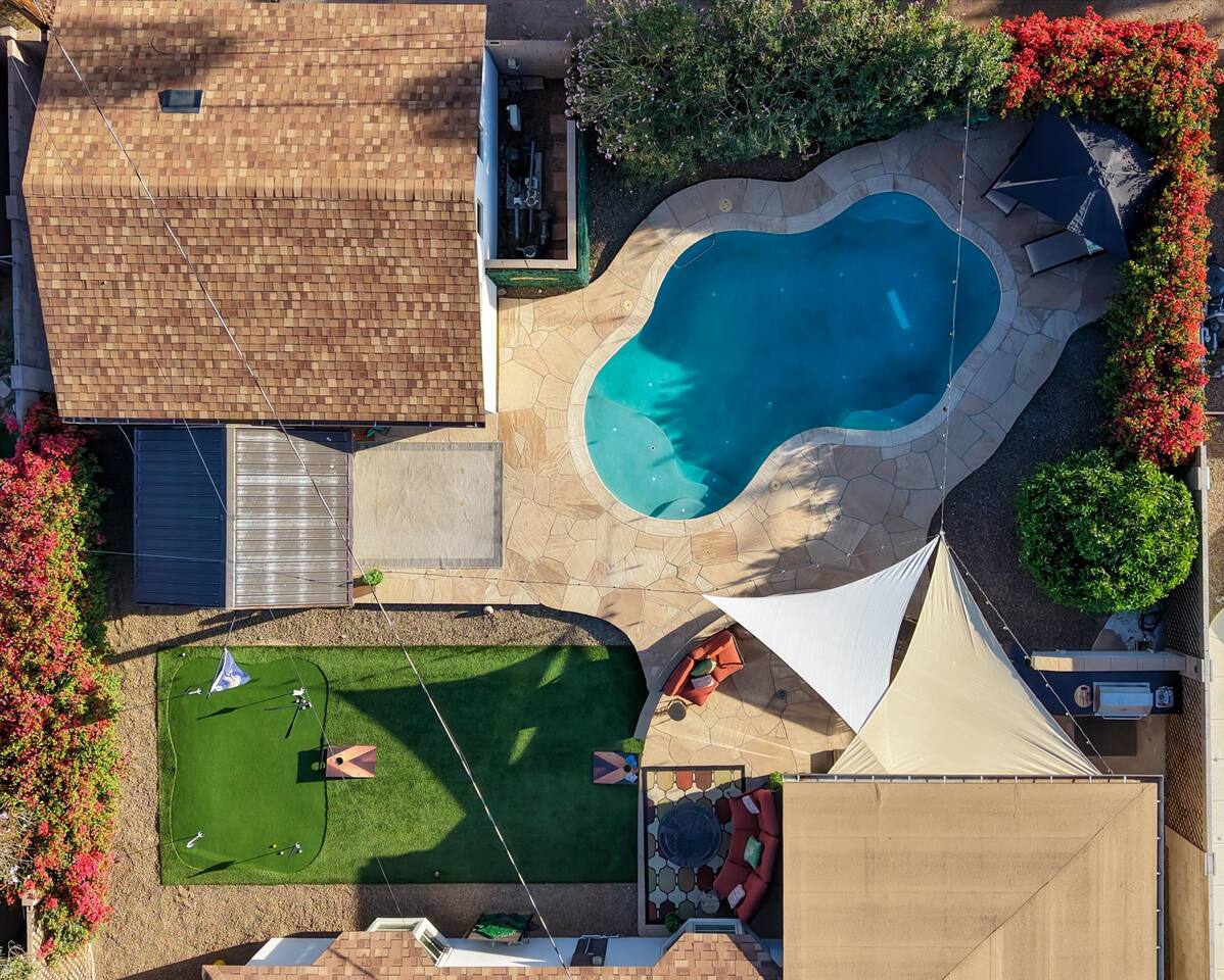 Welcome to Casa Arcadia Rejuvenation Retreat! Experience total wellness at this 4BR/3BA oasis in the prestigious Arcadia Osborn area, bordering Old Town Scottsdale & Biltmore District. This home sleeps up to 10 guests featuring 2 ensuite masters, theater room, chef's kitchen/wet bar, Anti-Aging Circuit, home office, lush backyard with 4-hole putting green/turf game area, outdoor BBQ island & 4-speaker sound system. Arizona desert oasis charm meets modern luxury. Your family's sanctuary awaits!